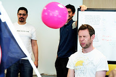 If you're like me, and I know you are, you are bored most of the 8-12 hours of the day when you're supposed to be working. Instead of filling that time with web browsing and talking on the phone, why not, instead, participate in FACEBALL! As they say on the site, your loins will be damp with excitement. The sport (or game) consists of 2 players, 2 day-glo beach balls, and 2 faces. Whomever hits their opponent's face the most wins. This is some serious boredom here, I only hope this was some sorta film project they were doing. Nevertheless, for full instructions, watch the movie below, and you should watch, its mildly entertaining.